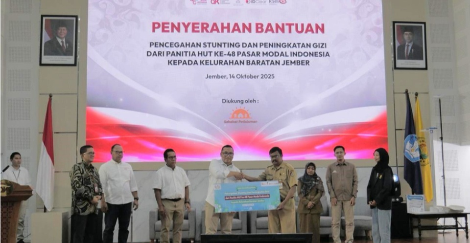 Jember – Self-Regulatory Organization (SRO) yang terdiri dari PT Bursa Efek Indonesia (BEI), PT Kliring Penjaminan Efek Indonesia (KPEI), dan PT Kustodian Sentral Efek Indonesia (KSEI) melaksanakan kegiatan Corporate Social Responsibility (CSR) bantuan untuk program Percepatan Penurunan Stunting dan Peningkatan Gizi Masyarakat di Kabupaten Jember. Bantuan ini diberikan dalam rangka memperingati 48 Tahun Diaktifkannya Kembali Pasar Modal Indonesia (HUT ke-48 pasar modal Indonesia) bekerja sama dengan lembaga filantropi Yayasan Sahabat Pedalaman. Penyerahan bantuan ini secara simbolis dilakukan di Kelurahan Baratan, Kabupaten Jember pada Selasa (14/10/2025).